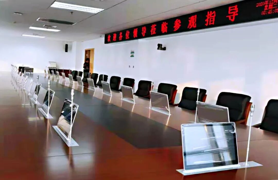 常规性会议室采用DANACOID 15.6无纸化升降触摸终端、无纸化会议客户端主机、无纸化会议系统服务器、编解码节点设备,实现会议签到、文件下载查看分发、文件修改上传、文件同步演示、投票表决、呼叫服务、电子白板及手写批注等功能。